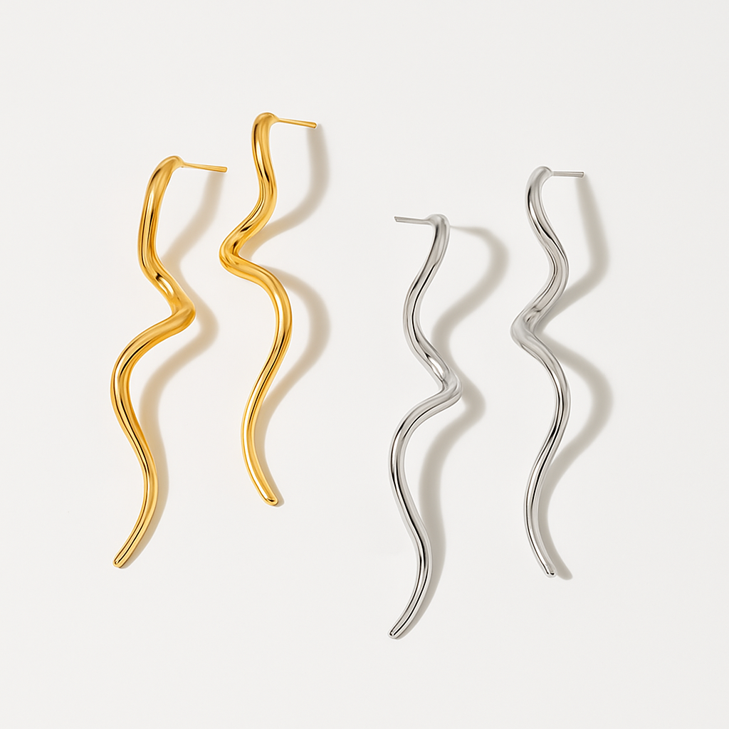 Wave Line är örhängena som fångar ögat direkt – med sin böljande form, eleganta längd och moderna touch. Designade för att röra sig i takt med dig, ger de ett både konstnärligt och självsäkert uttryck.